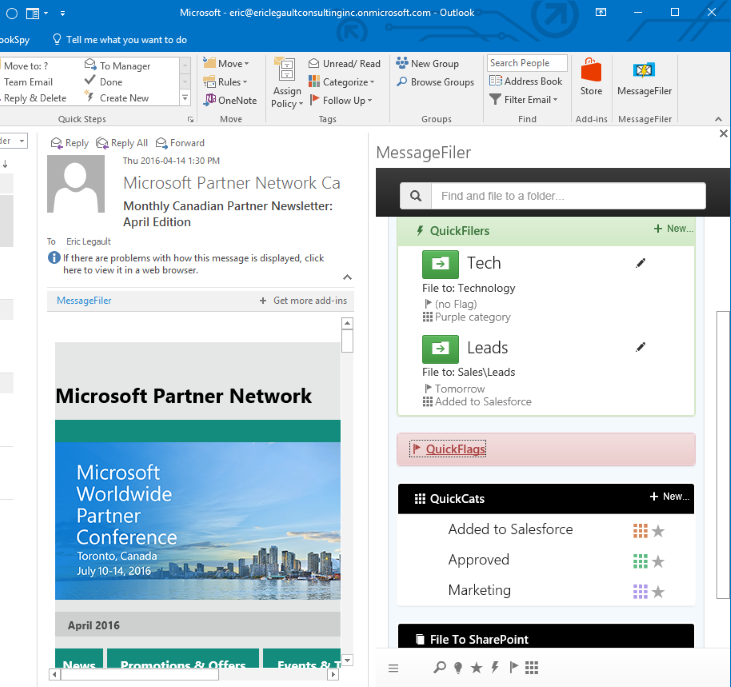 MessageFiler was crafted with passion by long-serving Microsoft MVP Eric Legault, who has been building innovative Outlook solutions for 16 years. Now in association with Rockin' Software, the circle is complete. There will be rock. And great add-ins. We should stress that part.